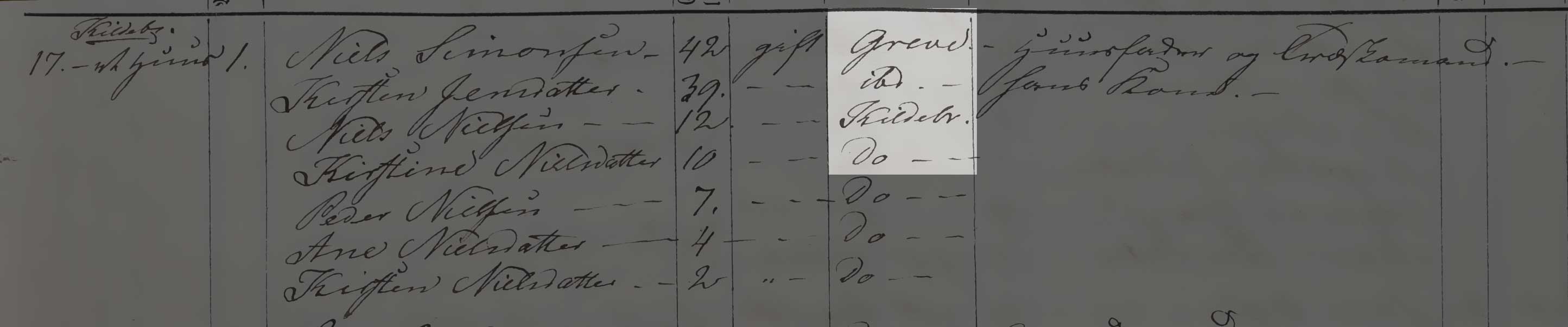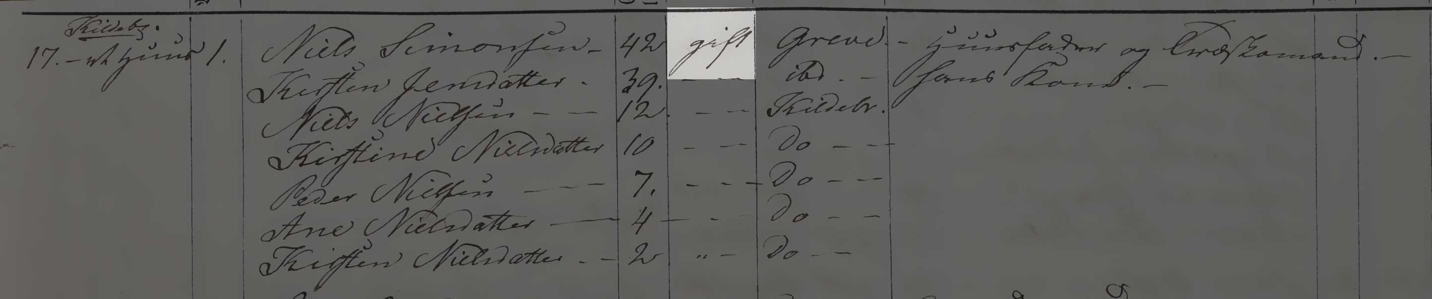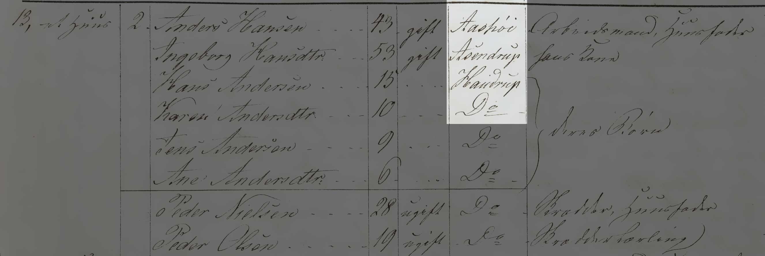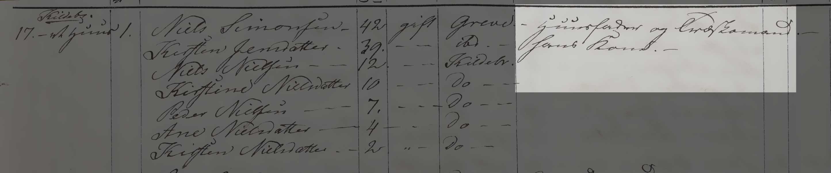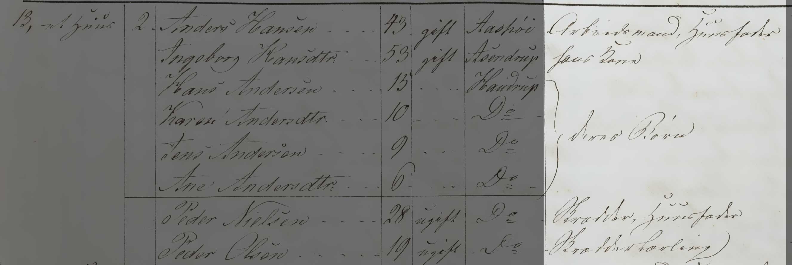 Kilden er Folketælling 1850, Kildebrønde Sogn, hus 17 (Danmarks Statistik, Folketælling 1850, Landdistrikter, pk. 90, København Tune).