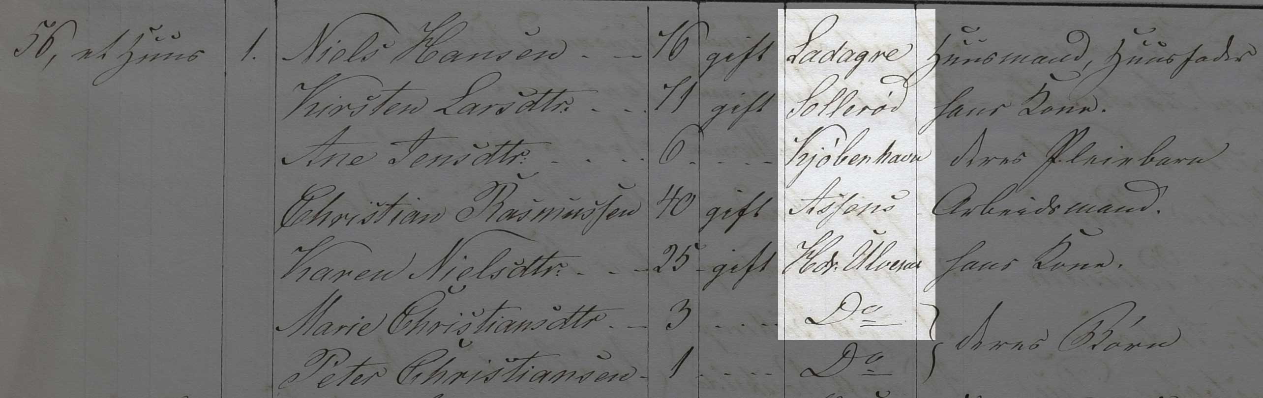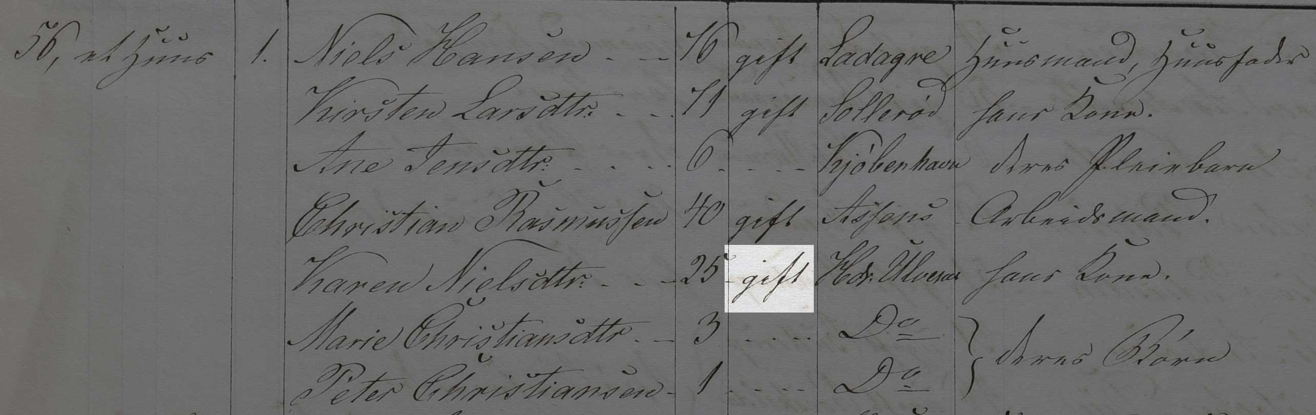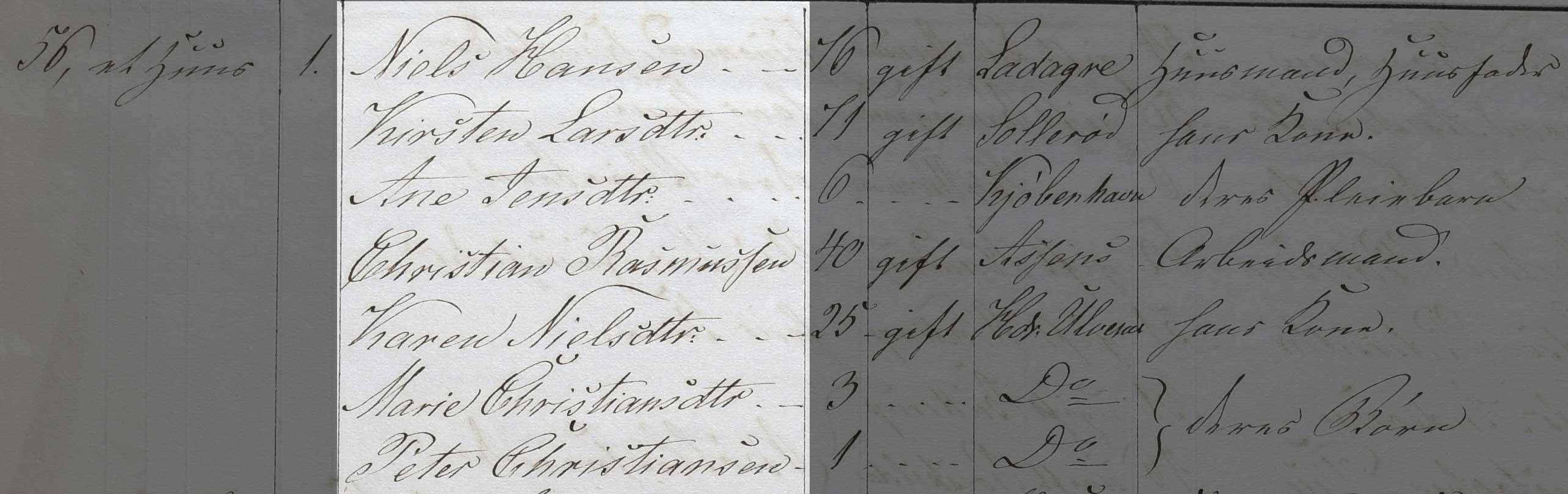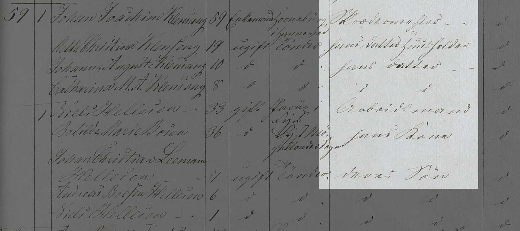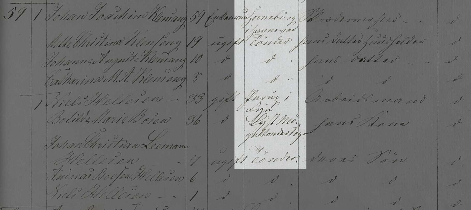 Kilden er Folketælling 1850, Kildebrønde Sogn, hus 17 (Danmarks Statistik, Folketælling 1850, Landdistrikter, pk. 90, København Tune).