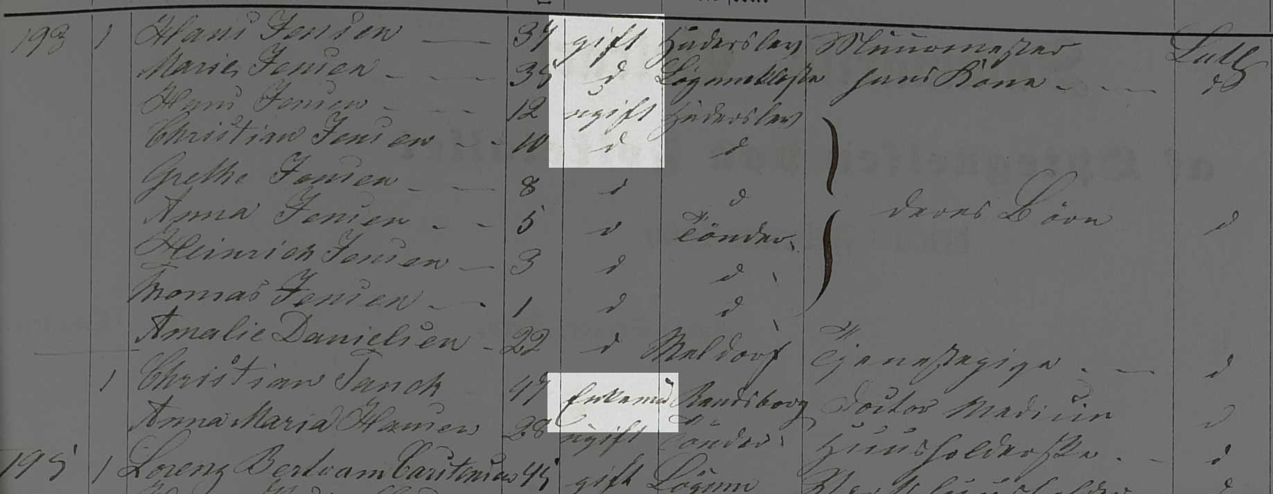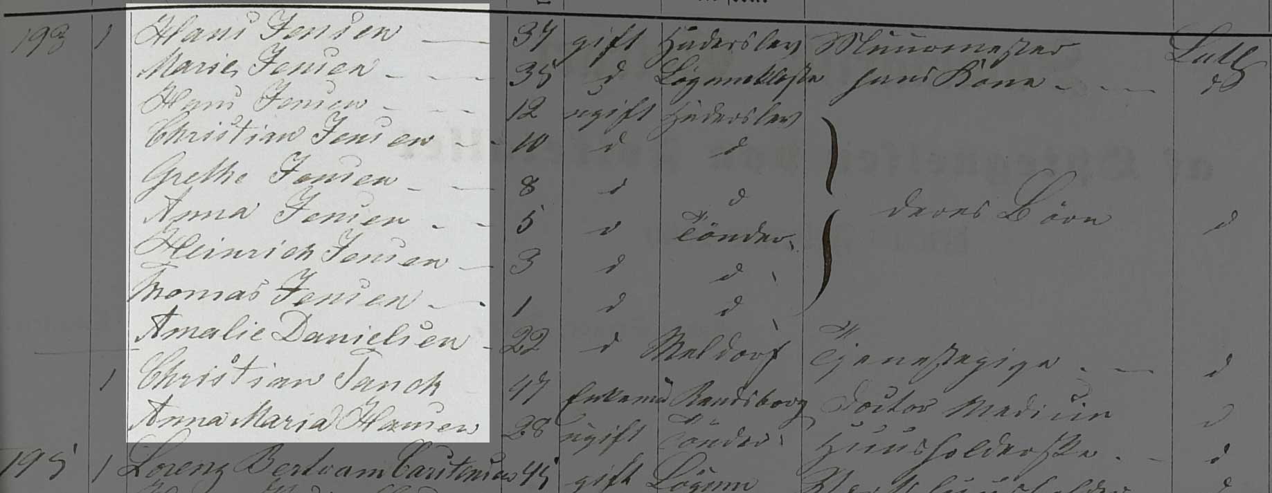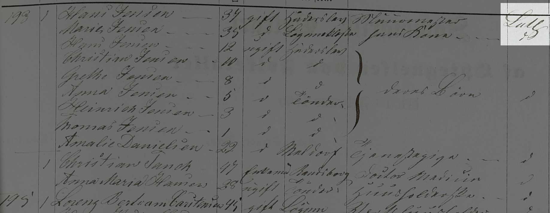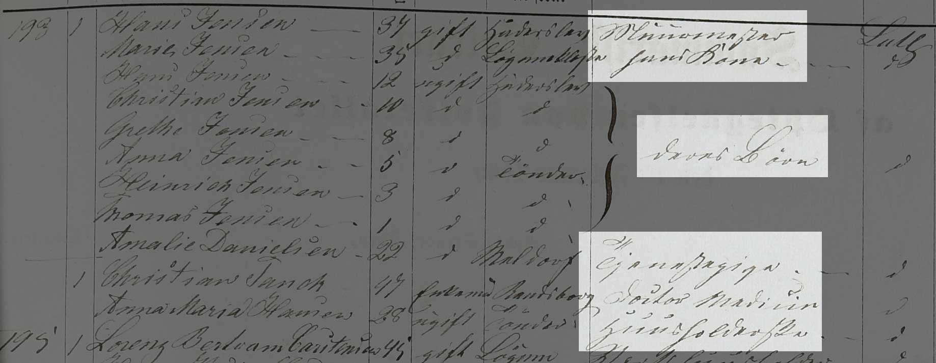 Kilden er Folketælling Tønder Købstad, 1860, Syd vest kvarter, hus 193 (Landsarkivet for Sønderjylland, Originale folketællinger, 120F).