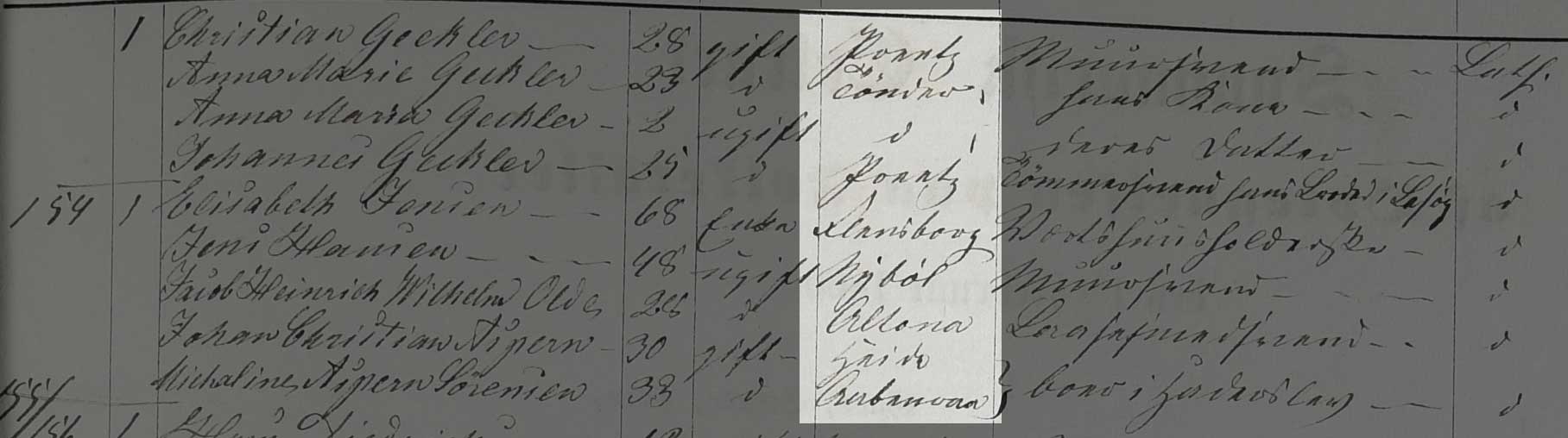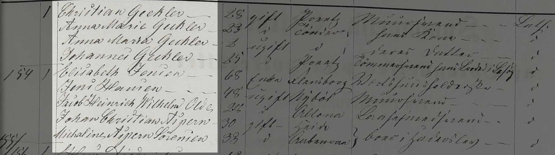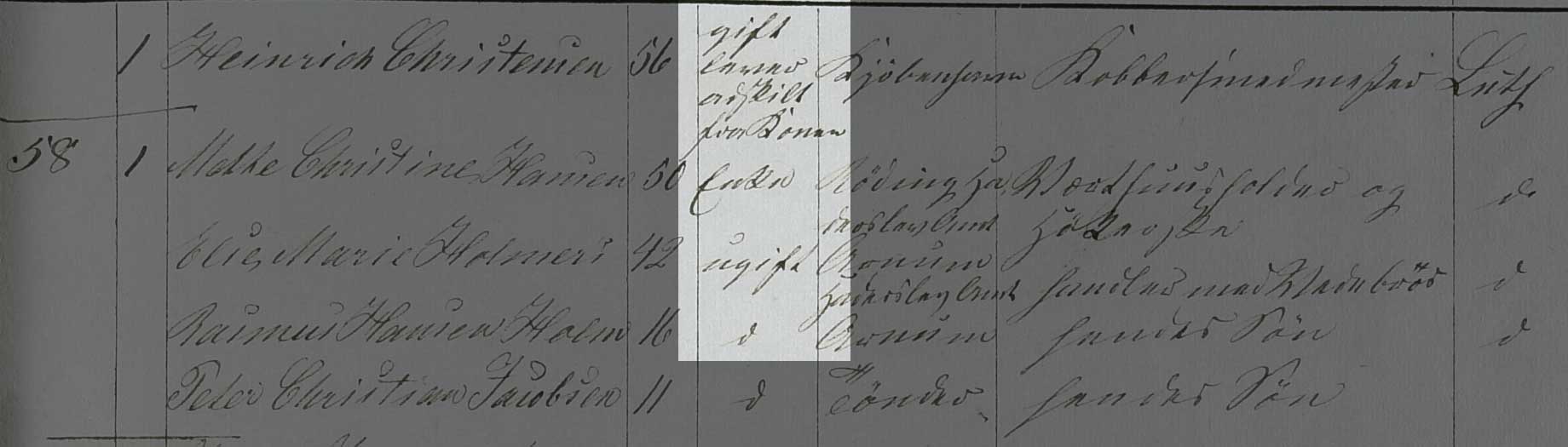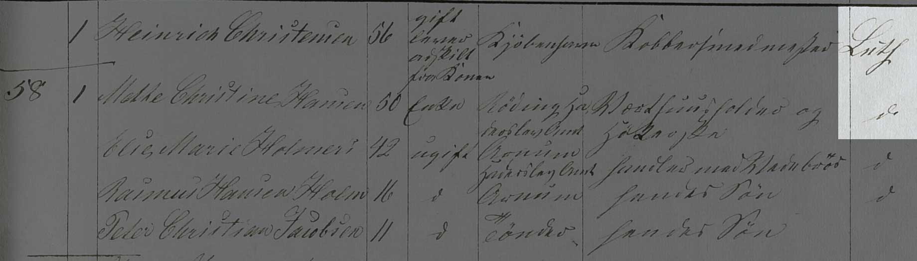 Kilden er Folketælling Tønder Købstad, 1860, Syd øst kvarter, hus 58 (Landsarkivet for Sønderjylland, Originale folketællinger, 120F).
