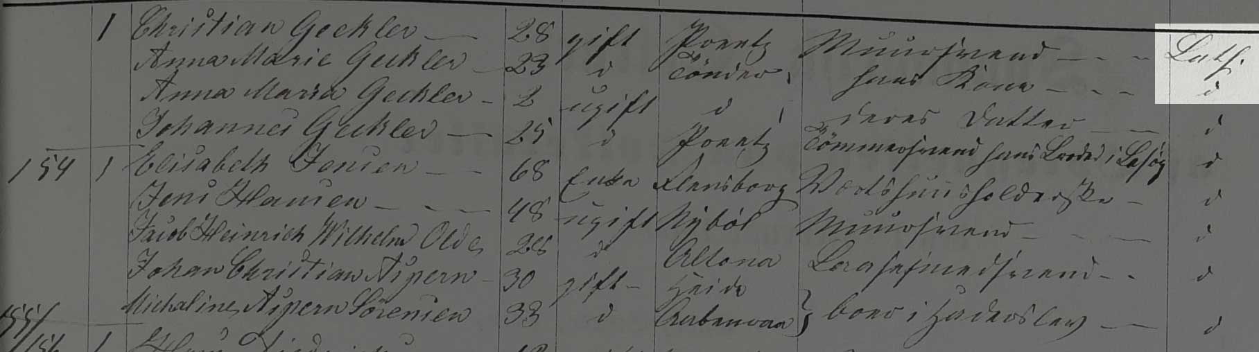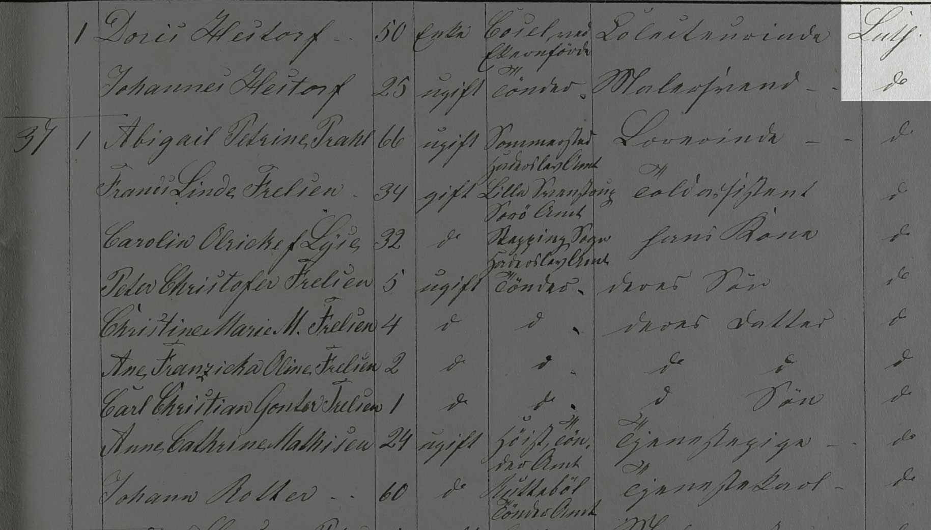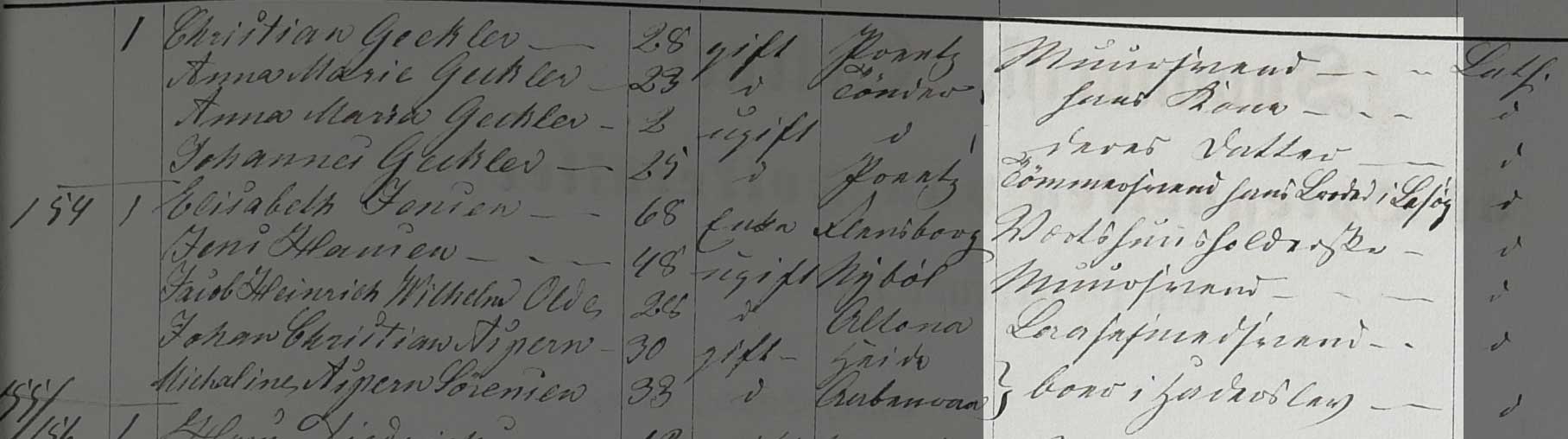 Kilden er Folketælling Tønder Købstad, 1860, Syd øst kvarter, hus 58 (Landsarkivet for Sønderjylland, Originale folketællinger, 120F).
