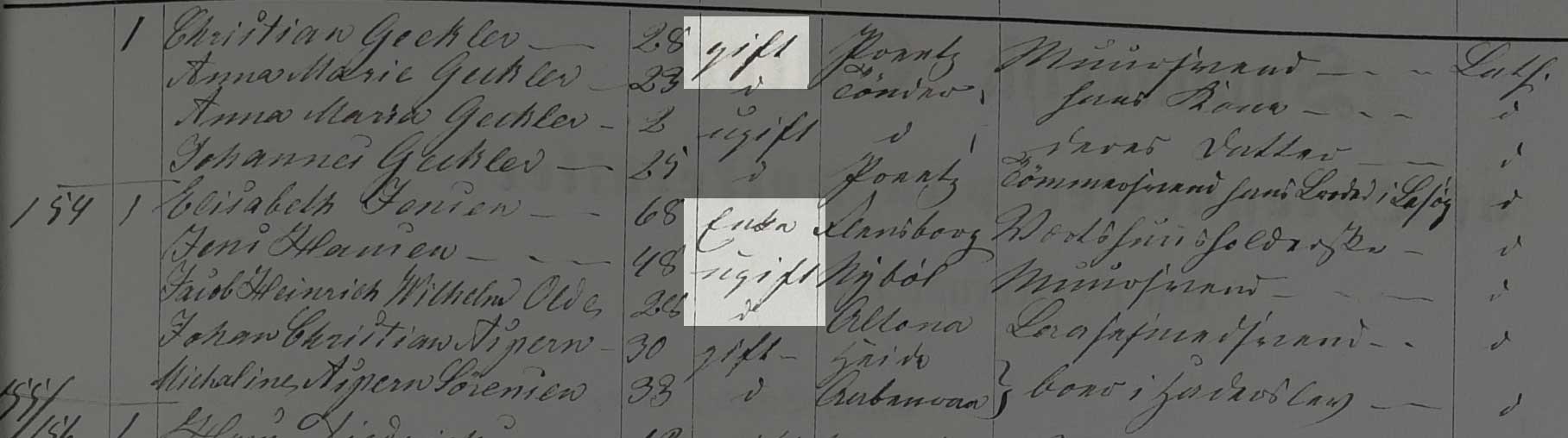 Kilden er Folketælling Tønder Købstad, 1860, Syd vest kvarter, hus 53 og 54 (Landsarkivet for Sønderjylland, Originale folketællinger, 120F).
