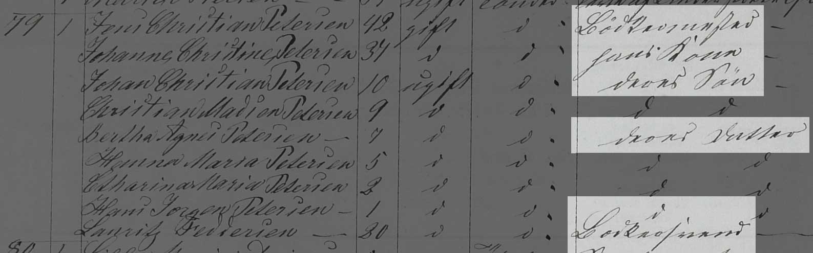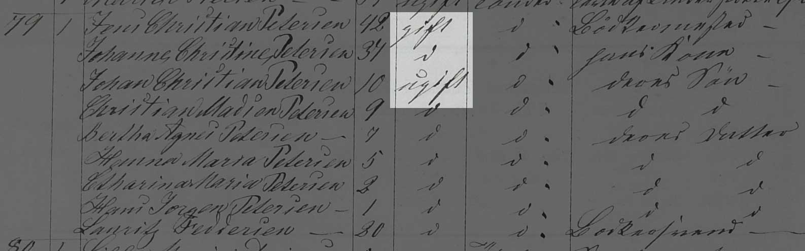 Kilden er Folketælling Tønder Købstad, 1860, Syd vest kvarter, hus 79 (Landsarkivet for Sønderjylland, Originale folketællinger, 120F).