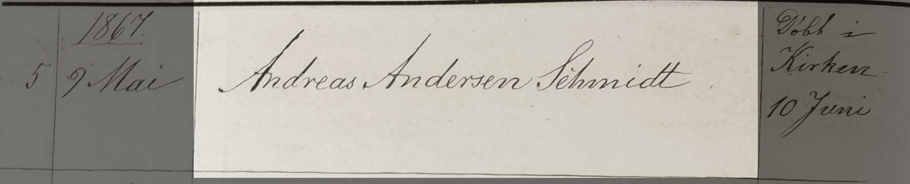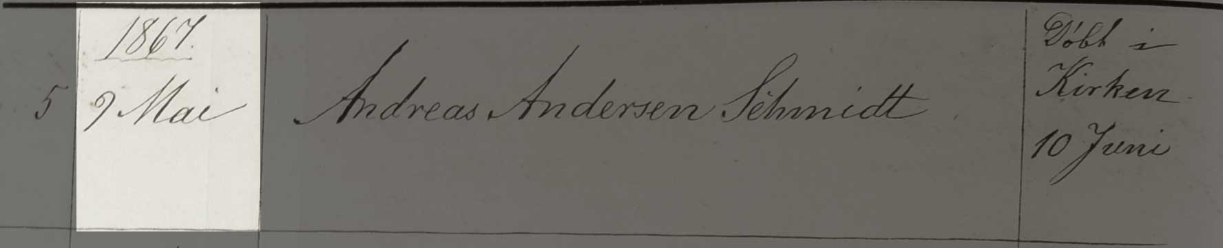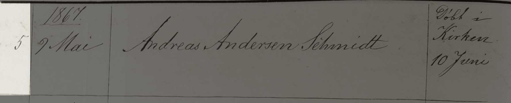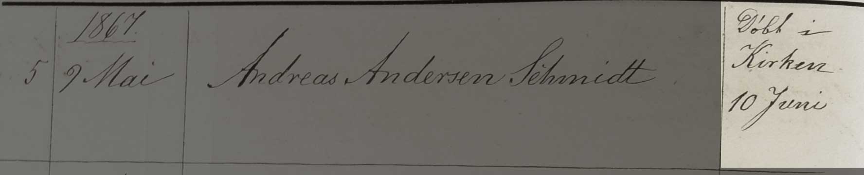Kilden er Arrild kirkebog, Ab1, fødte mænd, side 21, indføring 5, fra 1867.