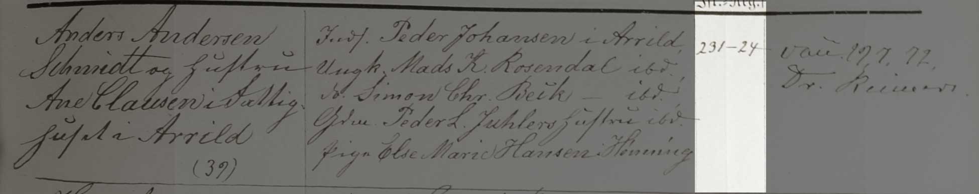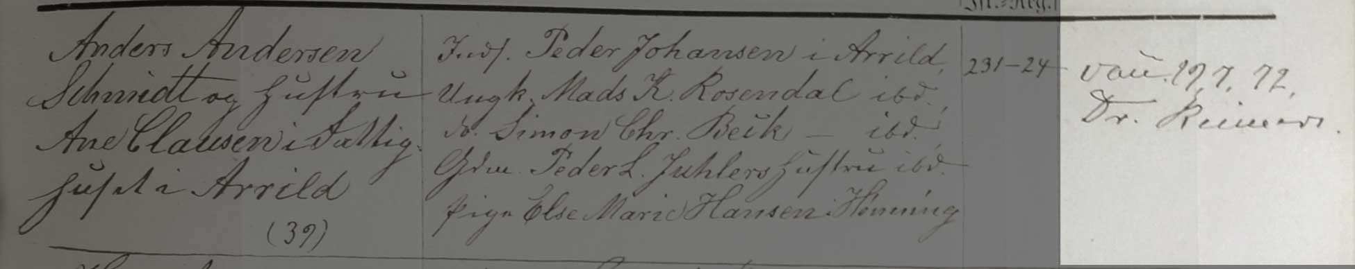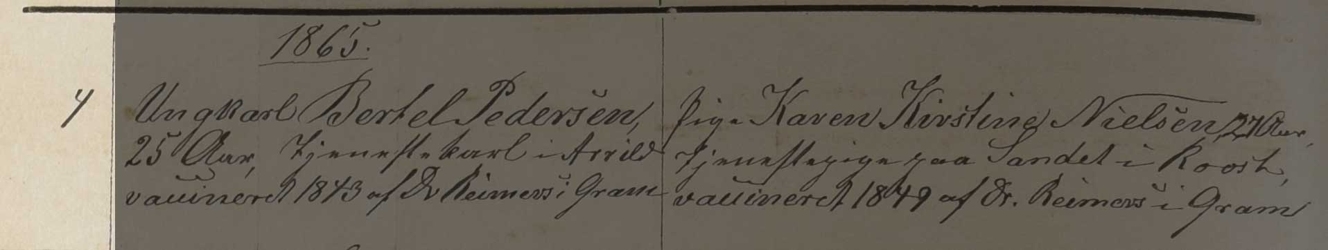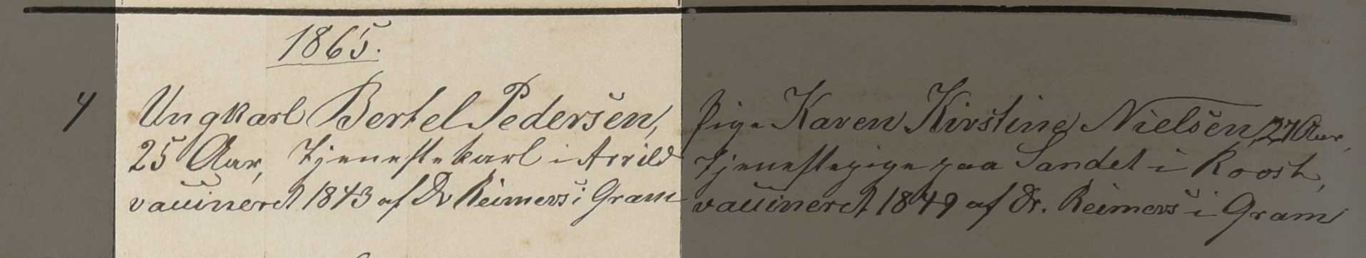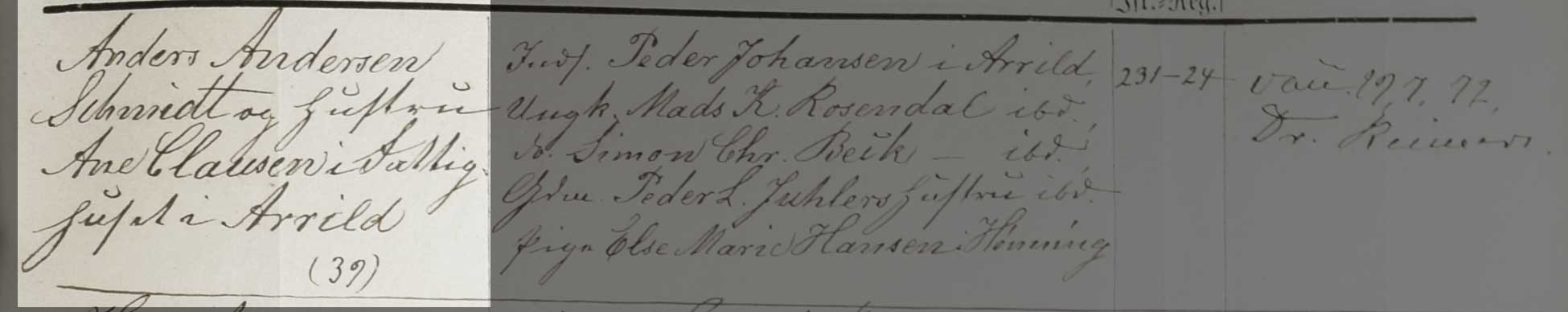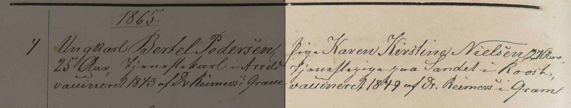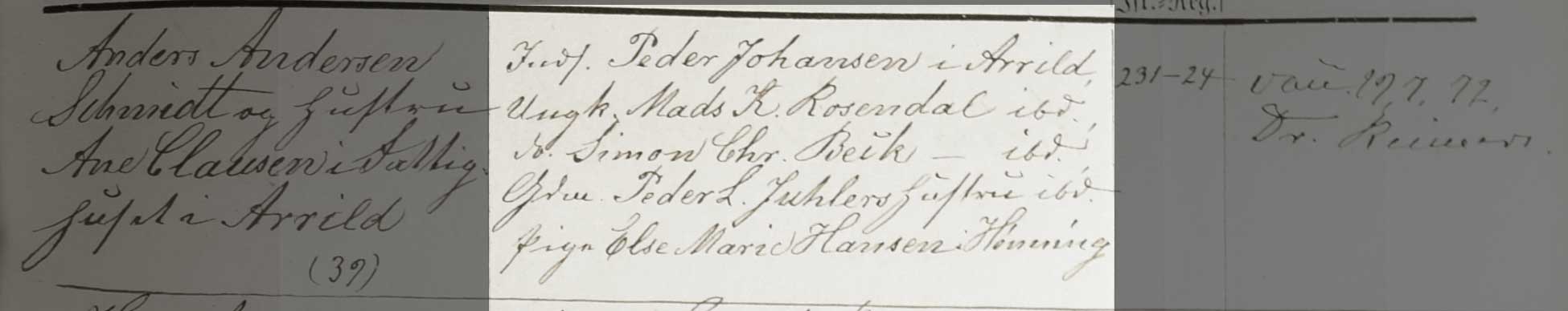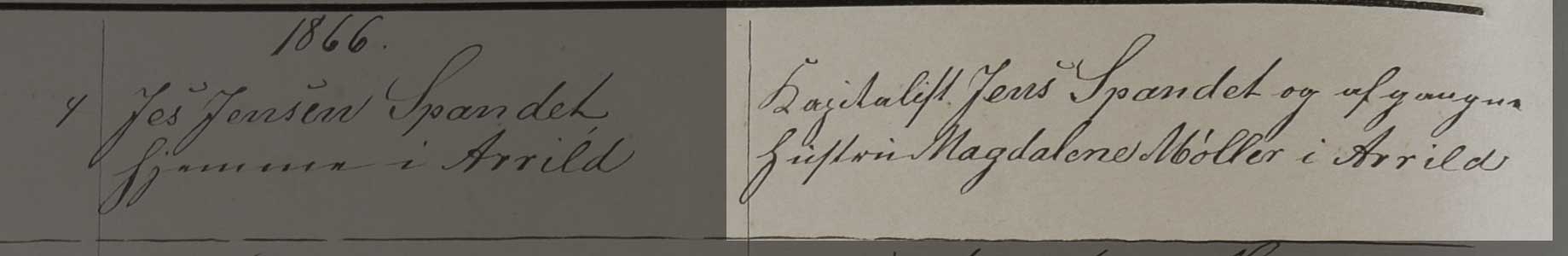 Kilden er Arrild kirkebog, Ab1, viede, side 157, indføring 4, fra 1865.