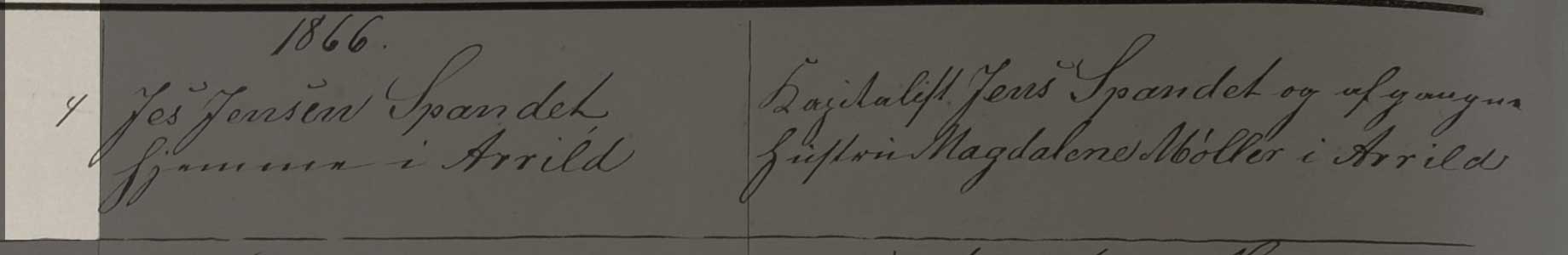 Kilden er Arrild kirkebog, Ab1, konfirmerede mænd, side 111, indføring 4, fra 1866.
