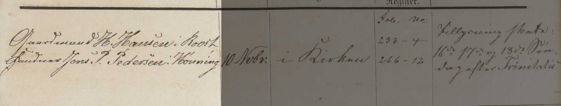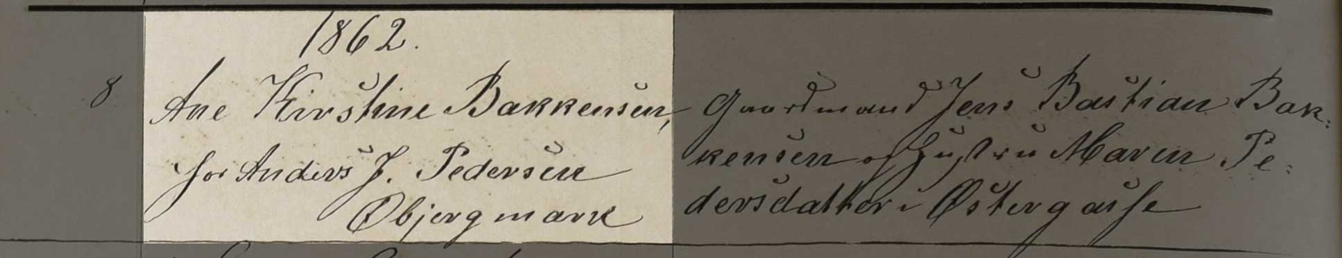 I de følgende øvelser skal du tyde tekster fra kirkebøger. Hver tekst er opdelt i mindre dele, som er fremhævet på billederne.