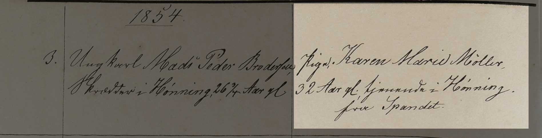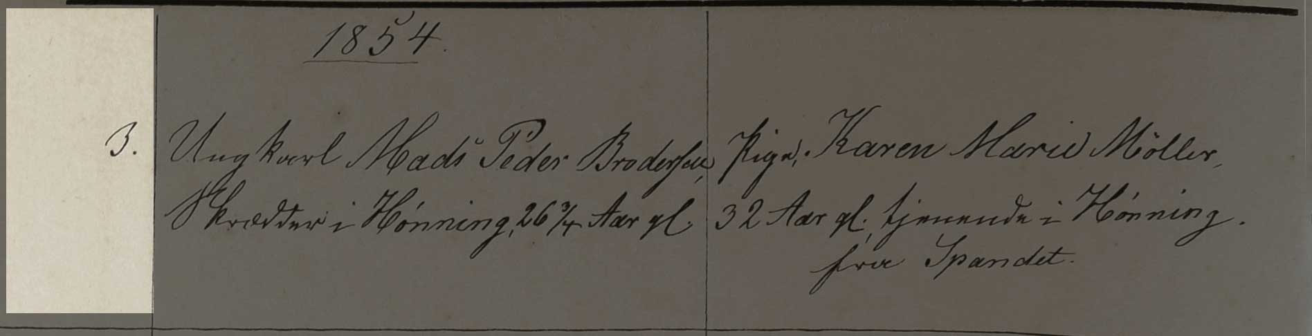 Kilden er Arrild kirkebog, Ab1, viede, side 147, indføring 3, fra 1854.