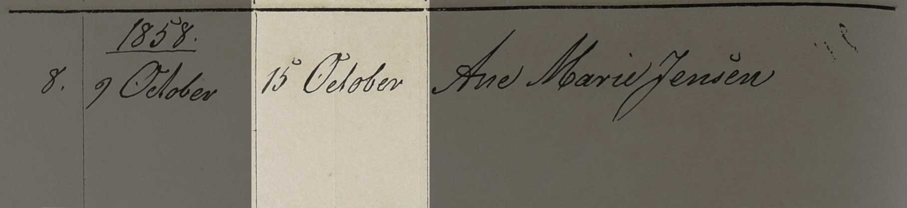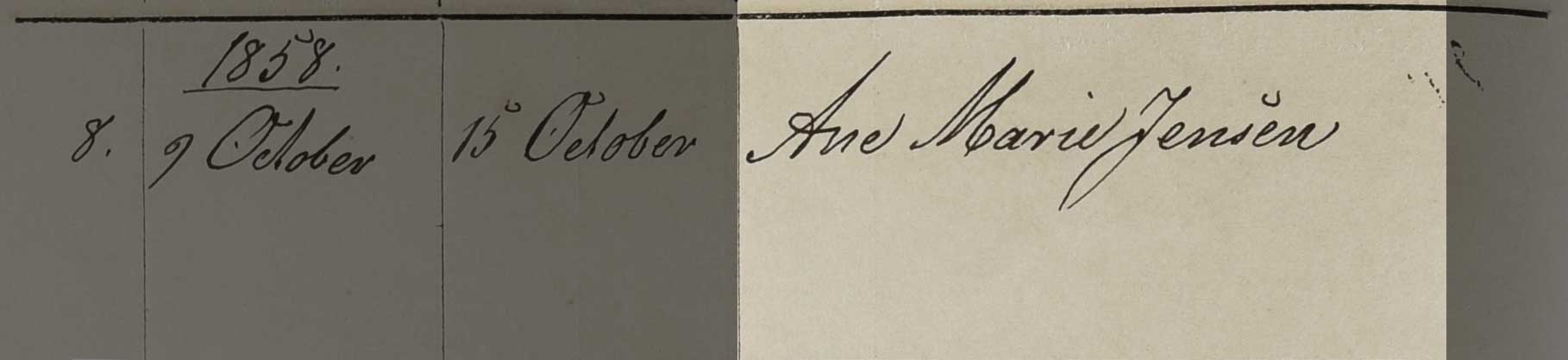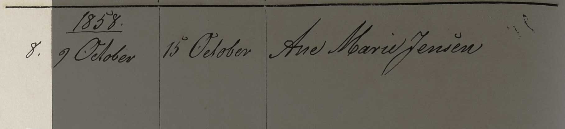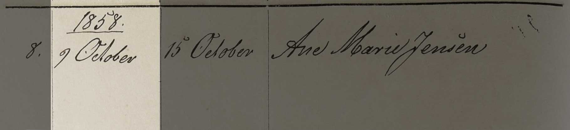 Kilden er Arrild kirkebog, Ab1, døde, side 215, indføring 8, fra 1858.